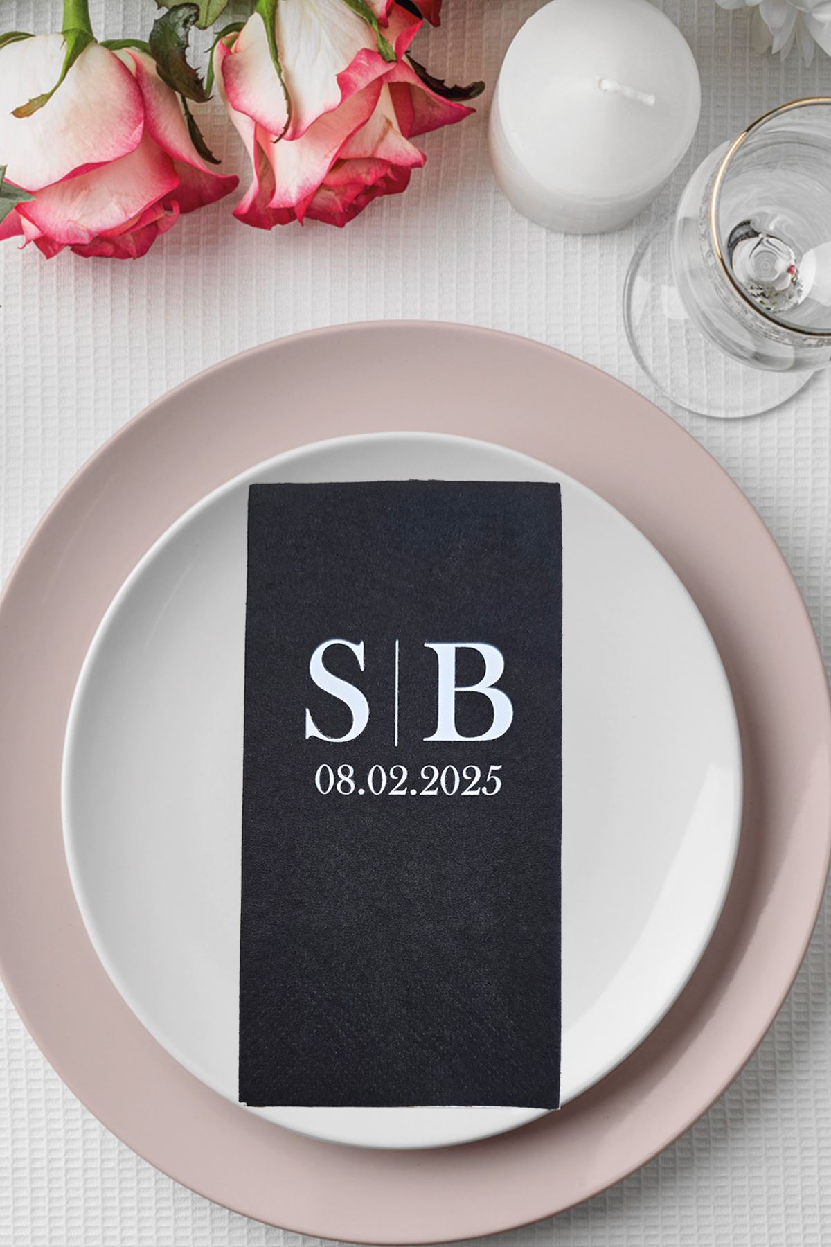 Garson Katlama Siyah peçete üzerine beyaz baskı yapılmaktadır.