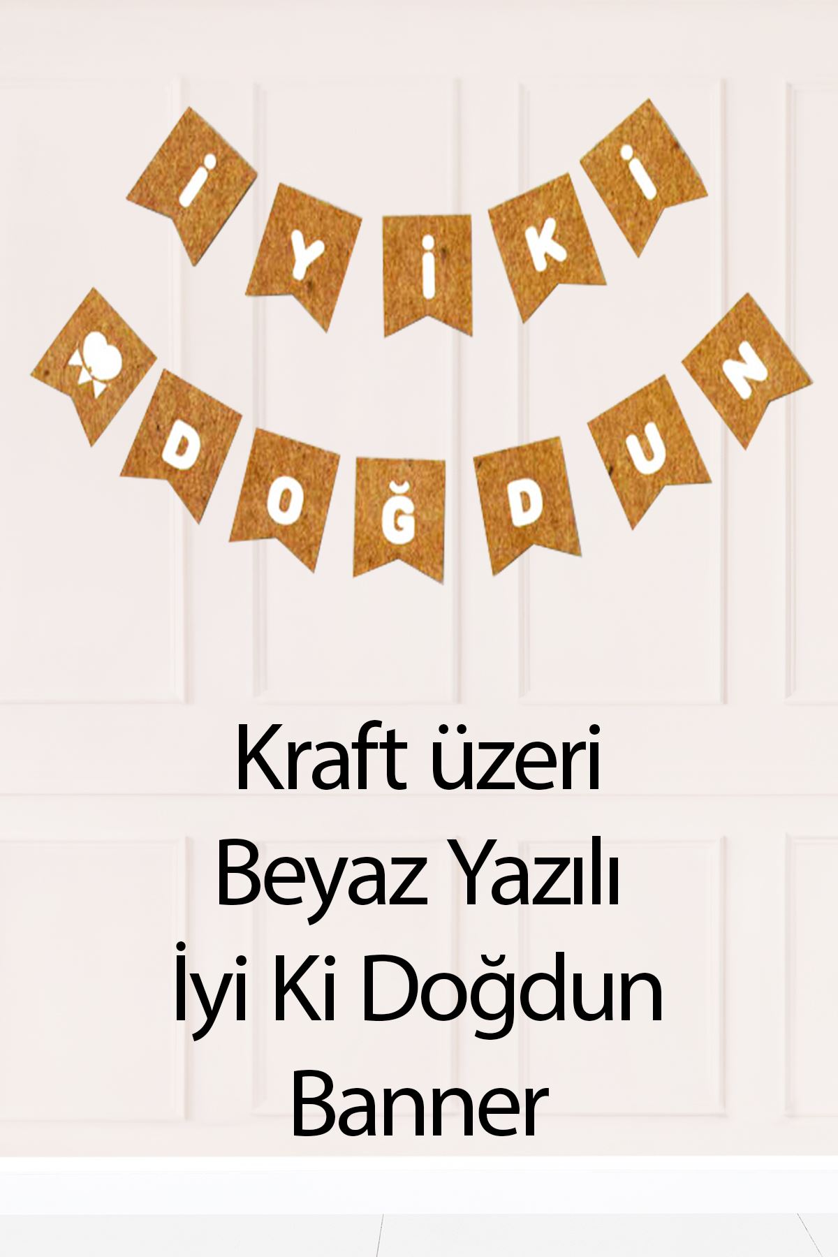 Kraft Üzeri Beyaz Yazılı İyi ki doğdun Banner İpli Doğum Günü Yazısı Banner