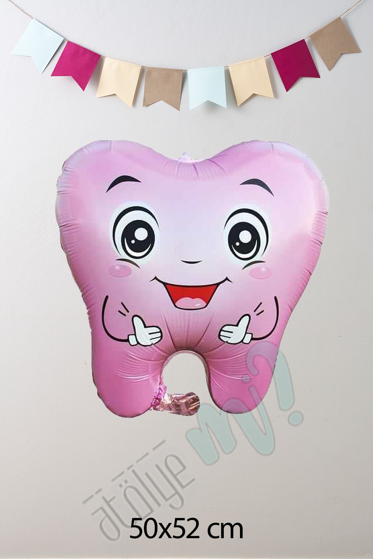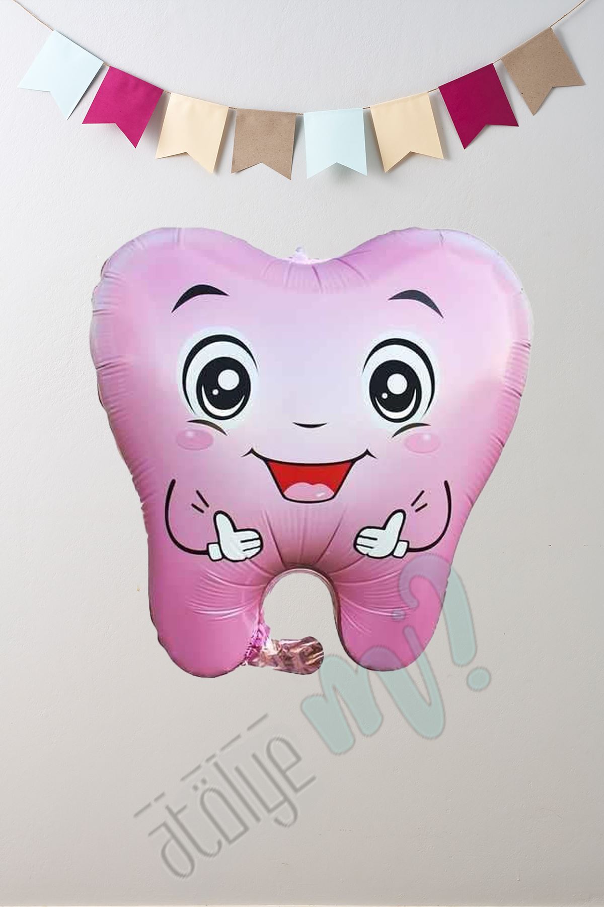 Pembe Diş Folyo Balon Diş Buğdayı Süslemesi Diş Şekilli Balon