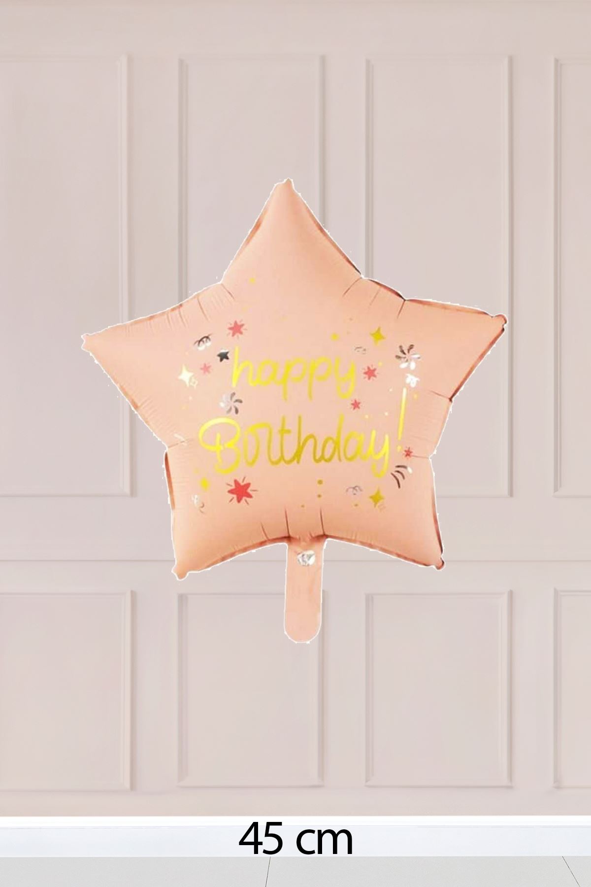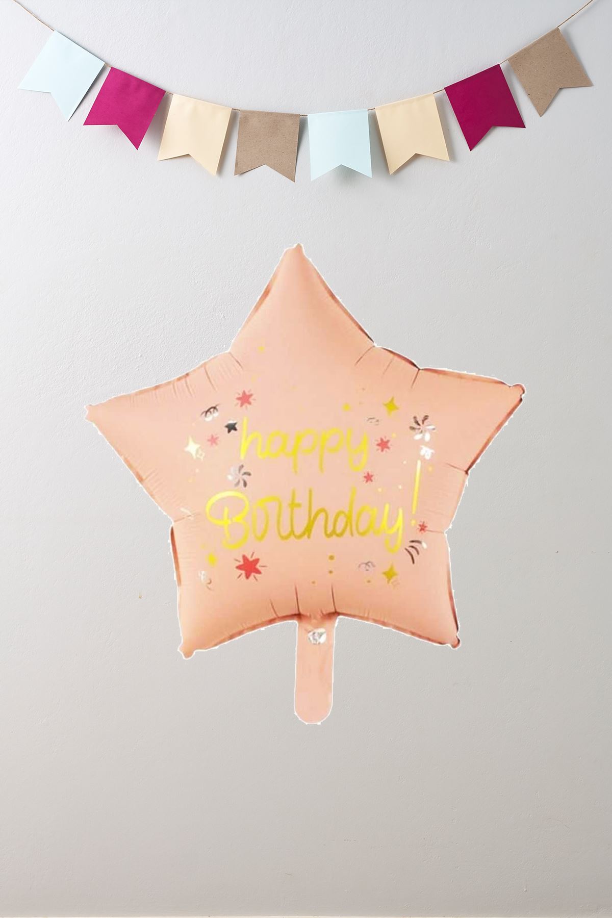 Pembe Happy Birthday Yazılı Yıldız Folyo Balon