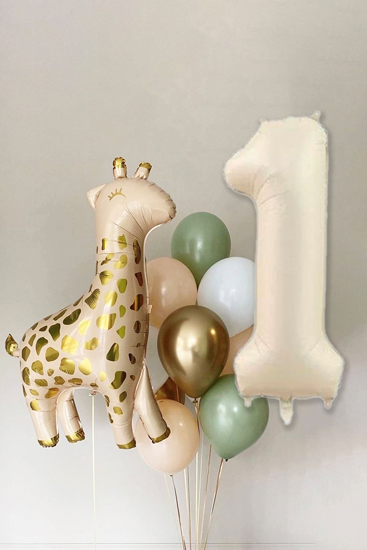 Zürafa Balonlu Krem Yaş Balonlu 15 Parça 1 Yaş Doğum Günü Balon Seti